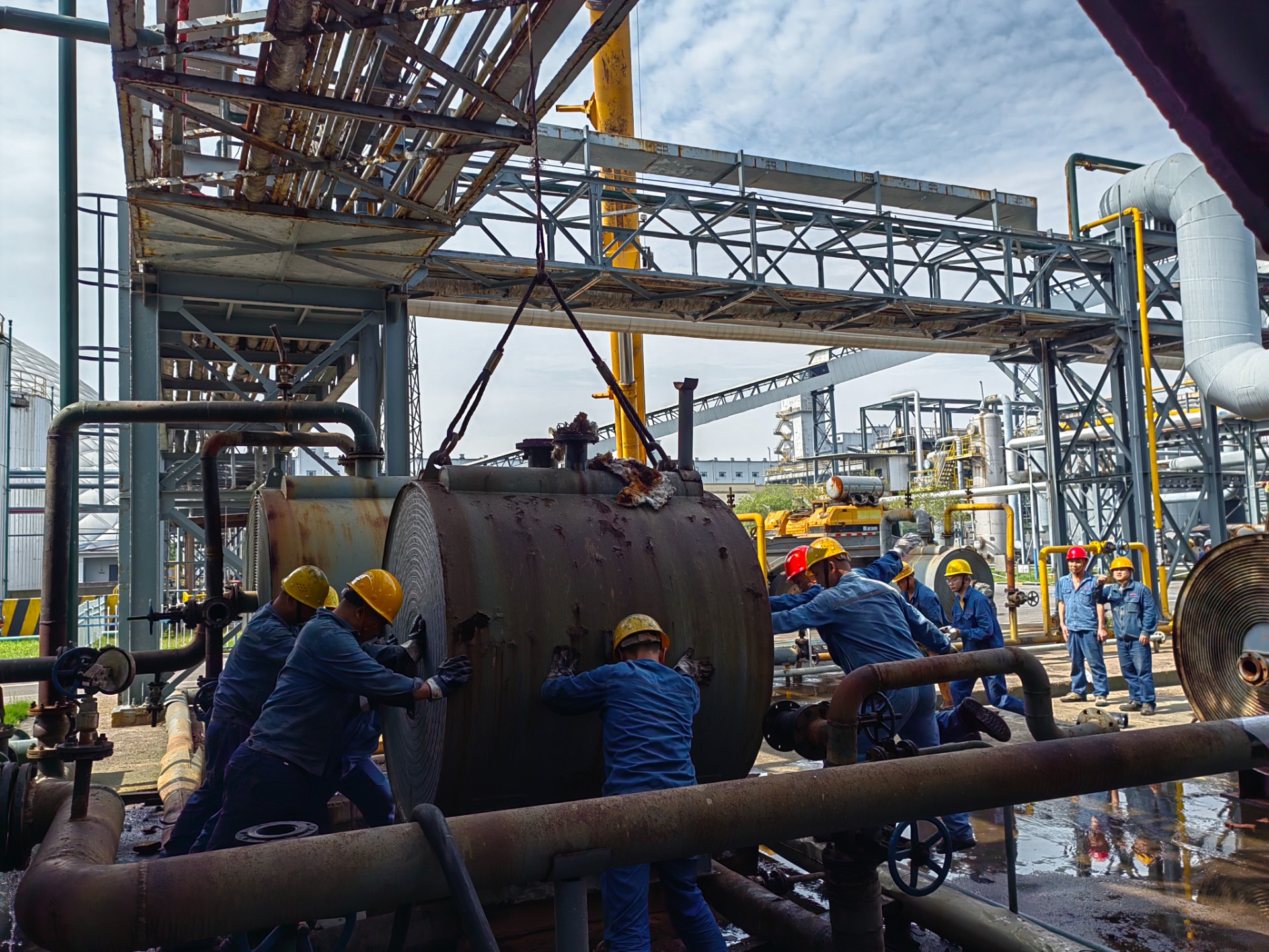 一线传真 | 新高焦化化产车间:用时五小时,完成换热器更换工作