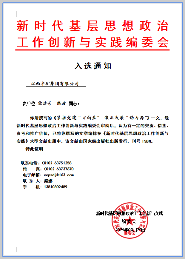 【喜讯】丰矿集团党建理论文章入选《新时代思想政治工作创新与实践》